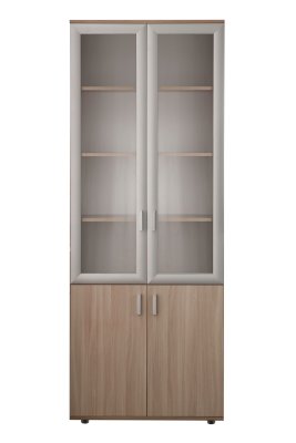 Закрытый шкаф для документов. За дверцами расположены вместительные полки. Стеклянные дверцы, придают конструкции визуальную легкость.